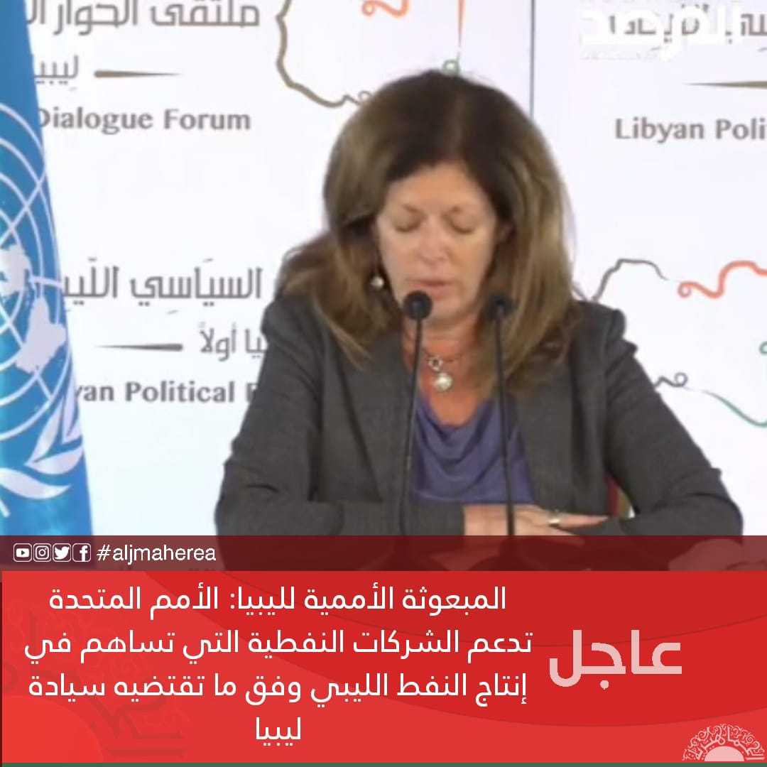 عاجل| المبعوثة الأممية لليبيا: الأمم المتحدة تدعم الشركات النفطية التي تساهم في إنتاج النفط الليبي وفق ما تقتضيه سيادة ليبيا