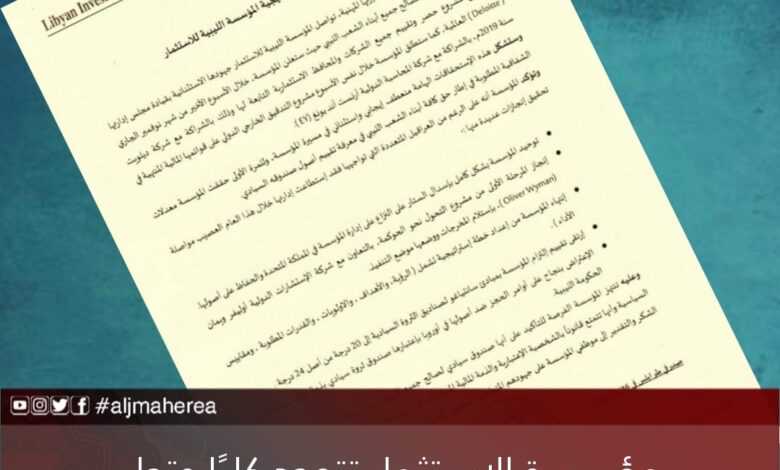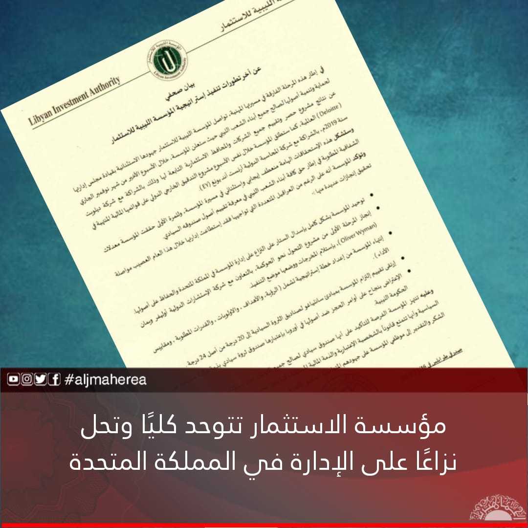 أعلنت المؤسسة الليبية للاستثمار توحيد المؤسسة كليا وحلها النزاع على إداراتها في المملكة المتحدة والحفاظ على أصولها.
