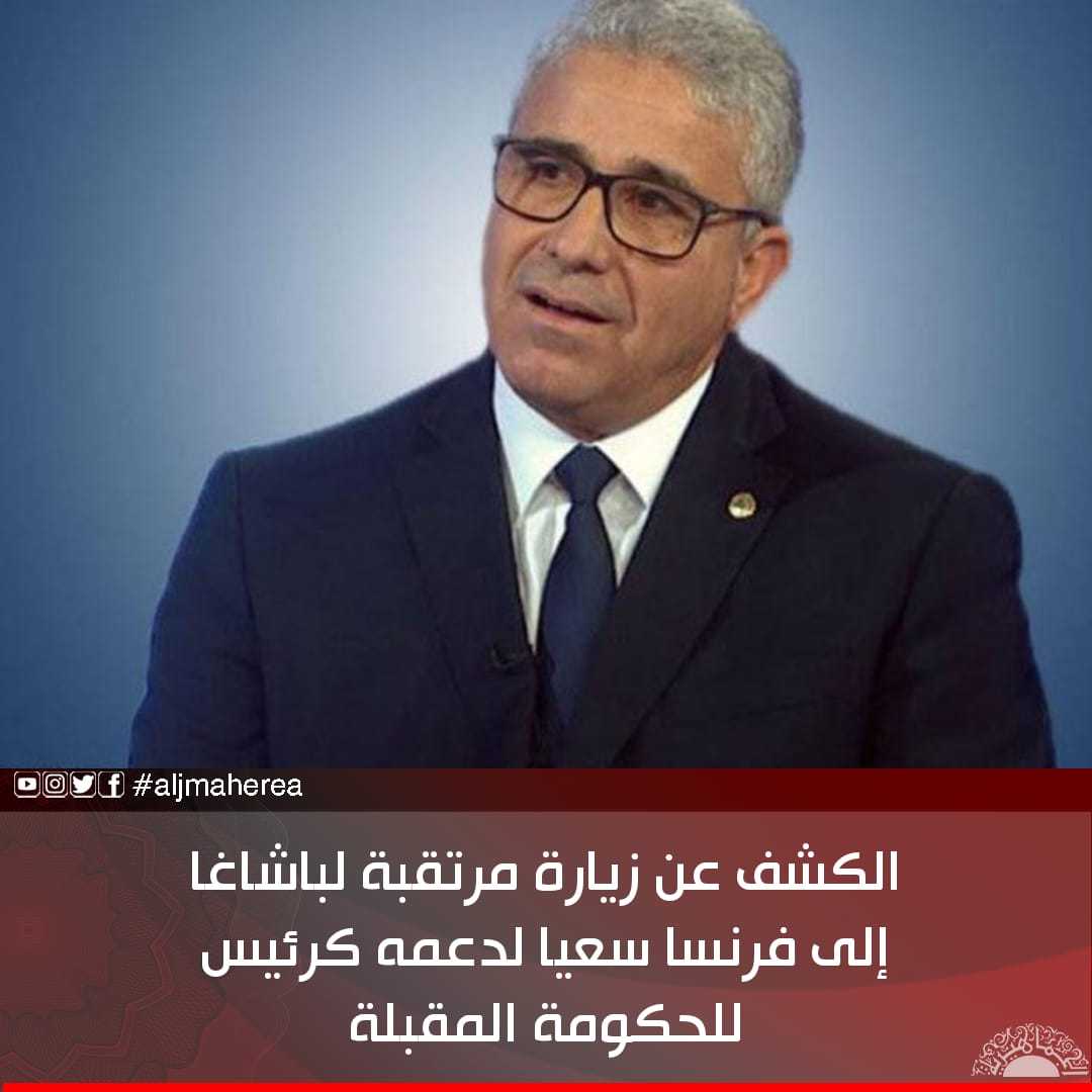 ونقلت وكالة نوفا الإيطالية عن المصدر، أن عددا من الشخصيات السياسية من مصراتة وغرب ليبيا ستصاحب باشاغا في زيارته إلى باريس، في محاولة من باشاغا لإقناع فرنسا بالضغط على حلفائها في شرق ليبيا للقبول به رئيسا للحكومة مقابل تولي رئيس مجلس نواب طبرق عقيلة صالح منصب رئيس المجلس الرئاسي الجديد.