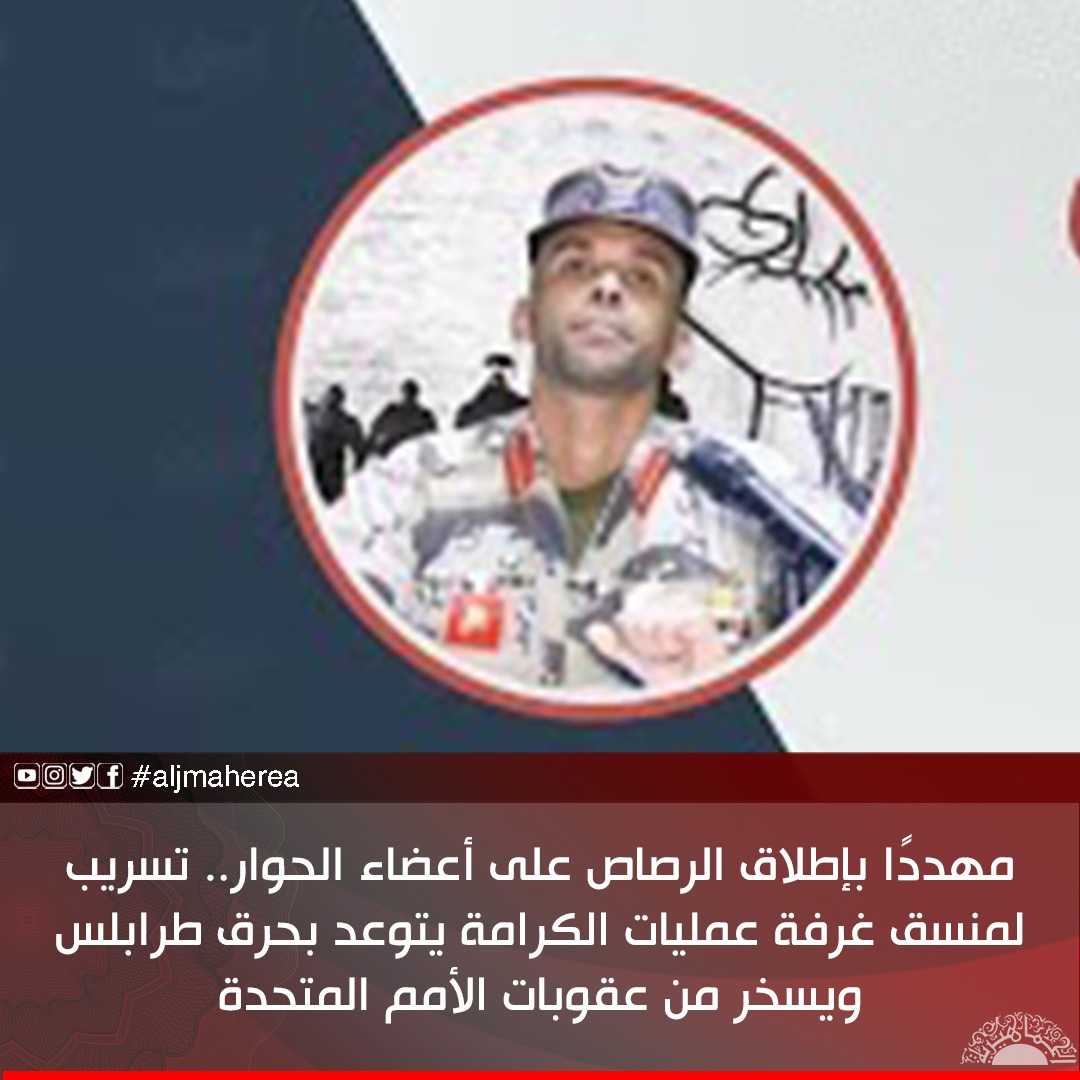 مهددًا بإطلاق الرصاص على أعضاء الحوار.. تسريب لمنسق غرفة عمليات الكرامة يتوعد بحرق طرابلس ويسخر من عقوبات الأمم المتحدة