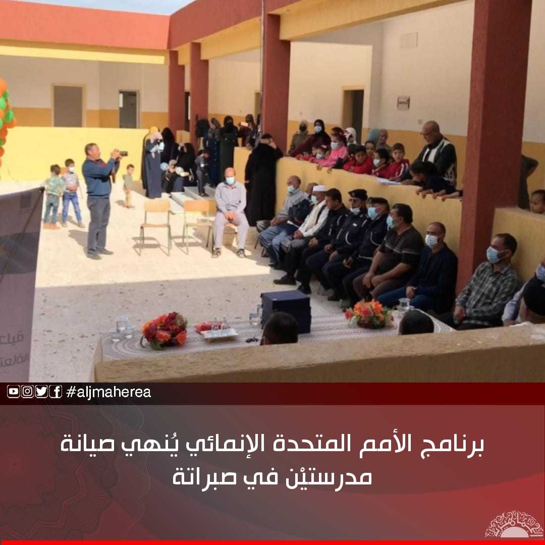 وأوضح برنامج الأمم المتحدة الإنمائي، أن خطوة صيانة المدرستين اللتين تستوعبان 700 طالب؛ جاءت لتعزيز القدرات المحلية من أجل الصمود والتعافي من آثار الحرب؛ مؤكدًا أن هذه الأعمال تمت من قبل الاتحاد الأوروبي، في إطار برنامج التعافي والاستقرار والتنمية الاجتماعية والاقتصادية في ليبيا “بلديتي”.