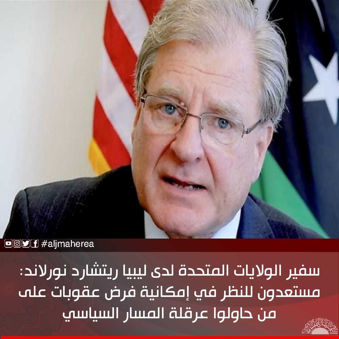 سفير الولايات المتحدة لدى ليبيا ريتشارد نورلاند: مستعدون للنظر في إمكانية فرض عقوبات على من حاولوا عرقلة المسار السياسي