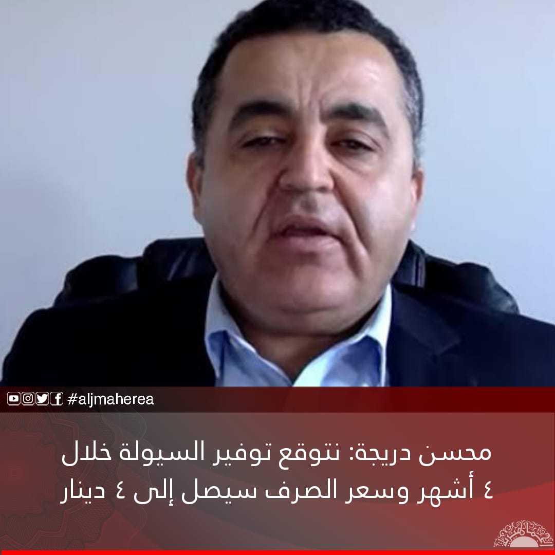 كما أضاف دريجة، أنه خلال ٤ أشهر سوف يتحسن سعر الصرف وينخفض إلى ٤ دينار وأنه سيتوفر السيولة .