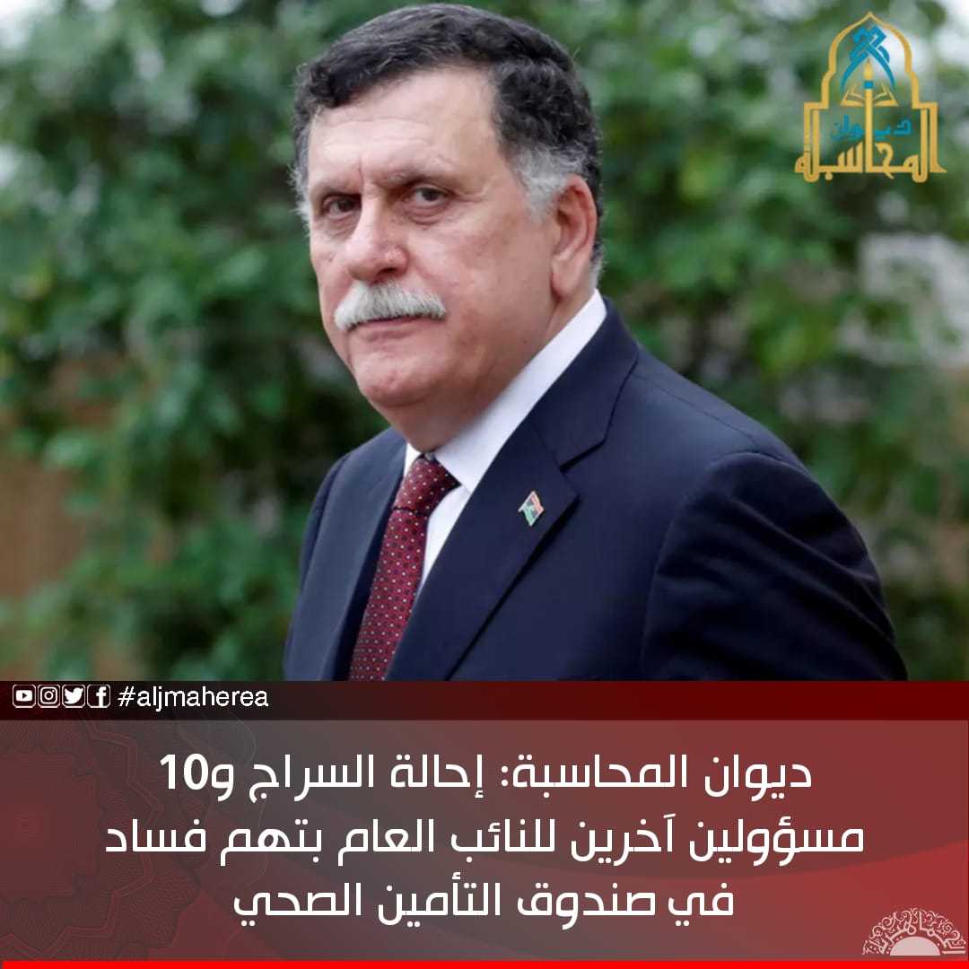 في واقعة فساد هائلة، تورط فيها فايز السراج، أصدرت اللجنة المشكلة من ديوان المحاسبة، تقريرًا تضمن مخالفات صندوق التأمين الصحي العام، وإحالة عدد من المتهمين بالفساد بداخله، إلى مكتب النائب العام، على رأسهم رئيس المجلس الرئاسي لحكومة السراج غير الشرعية، فائز السراج.