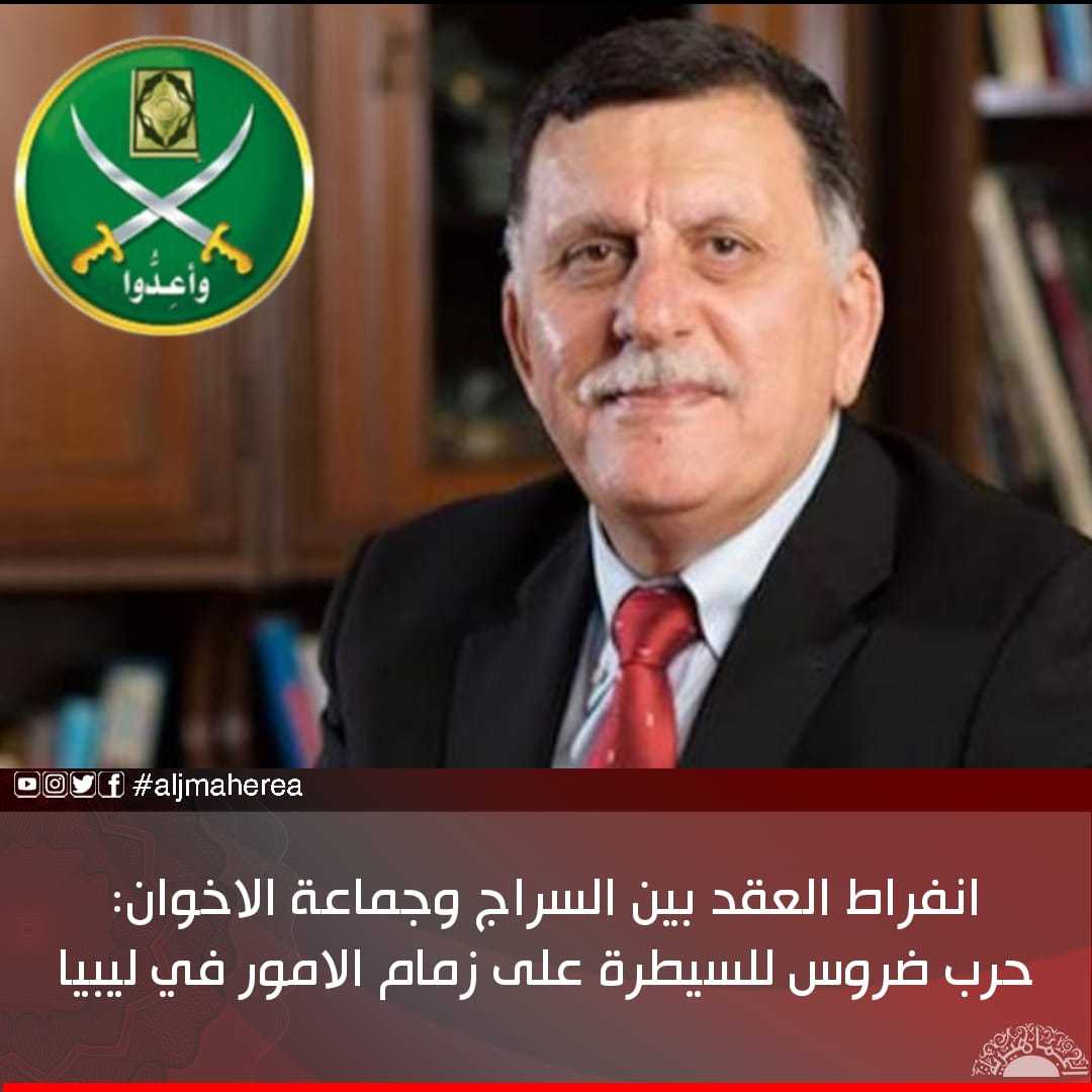 تقول الوقائع ان العقد بين فايز السراج وجماعة الاخوان قد انفرط وتعقدت الامور بينهم بعد انضمام قيادات في الصف الأول إلى حملة التشكيك والتخوين التي تشنها الجماعة منذ أشهر على السراج .