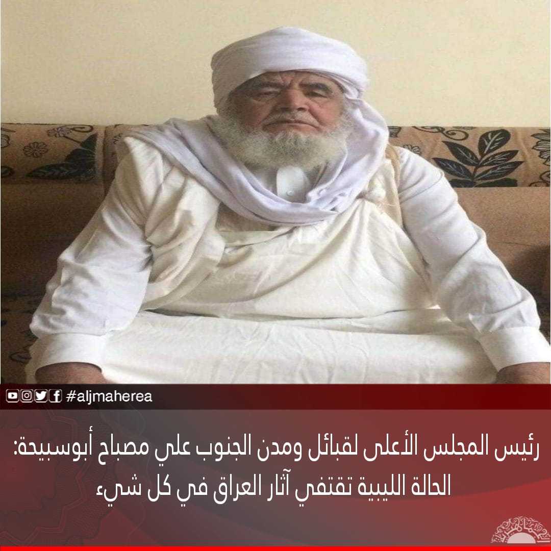 رئيس المجلس الأعلى لقبائل ومدن الجنوب علي مصباح أبوسبيحة: الحالة الليبية تقتفي آثار العراق في كل شيء