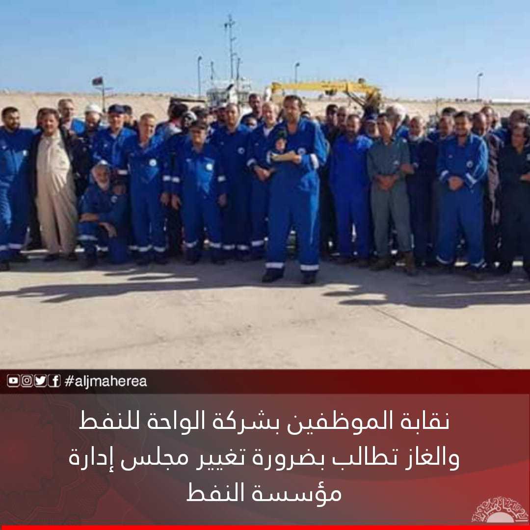 وقالت بأن عمال شركة الواحة للنفط والغاز سيدخلون في اعتصام كامل بجميع مواقع الشركة في حال لم يتم الاستجابة لمطلبنم وتغيير مجلس إدارة مؤسسة النفط.
