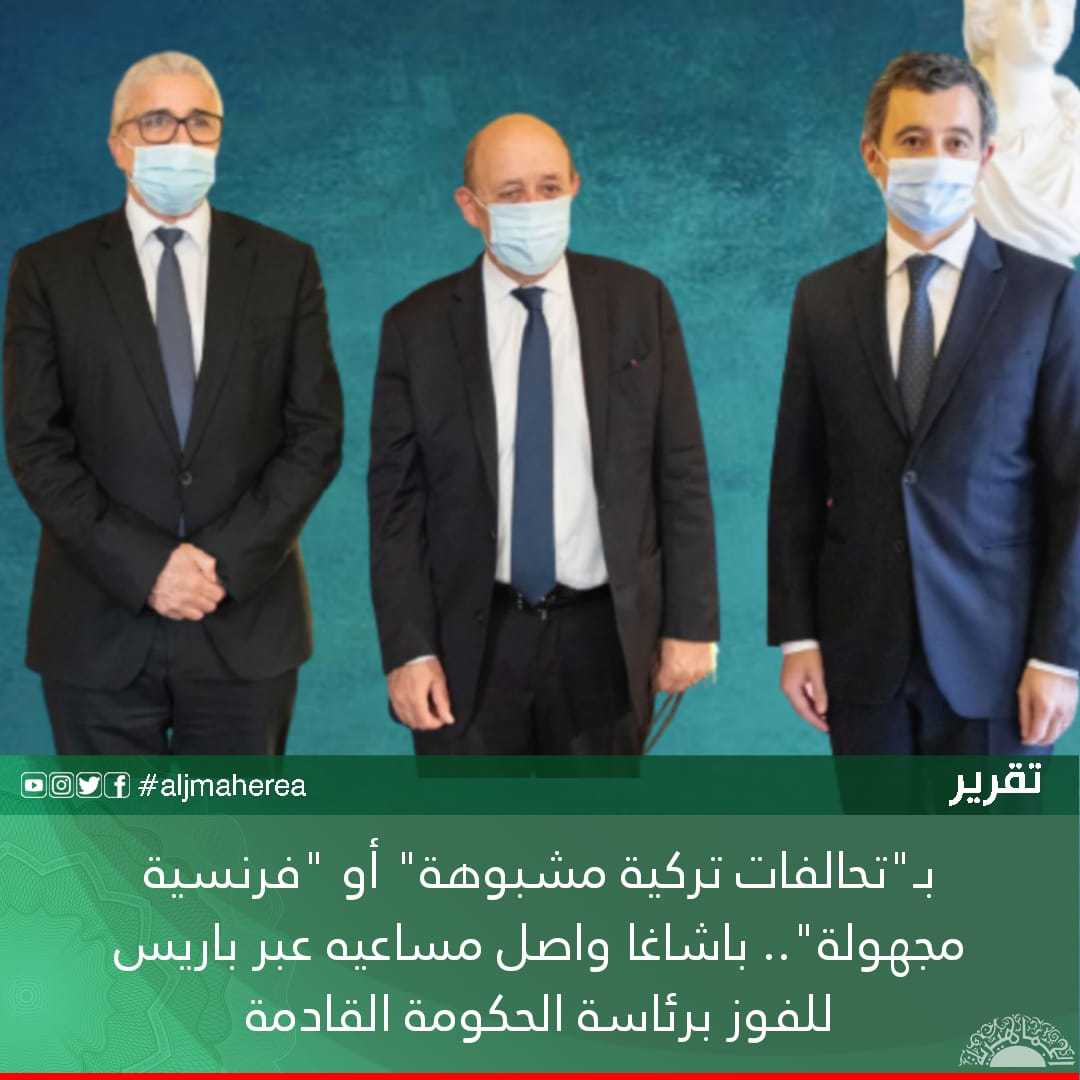 وسبقت زيارة باشاغا إلى فرنسا، زيارة أداها إلى مصر قبل نحو أسبوعين في محاولة لرفع أسهمه في القاهرة وتخفيف توجساتها من قربه للمحور القطري – التركي. خاصة أنها جاءت بعد أيام من زيارة أجراها إلى قطر وقّع خلالها اتفاقية تعاون أمني مع