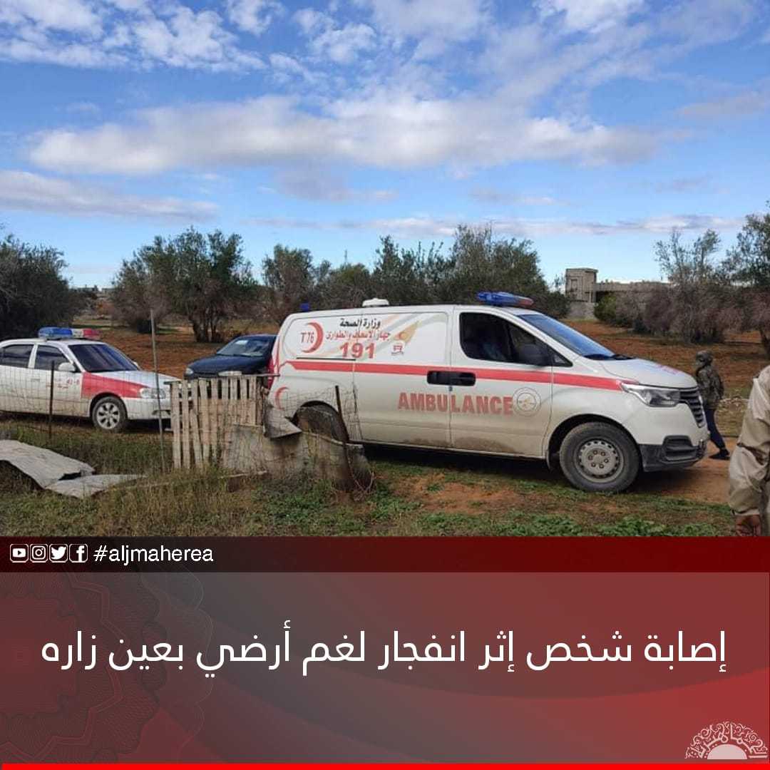 أعلن جهاز الإسعاف والطوارئ إصابة شخص في انفجار لغم أرضي في منطقة عين زارة.
