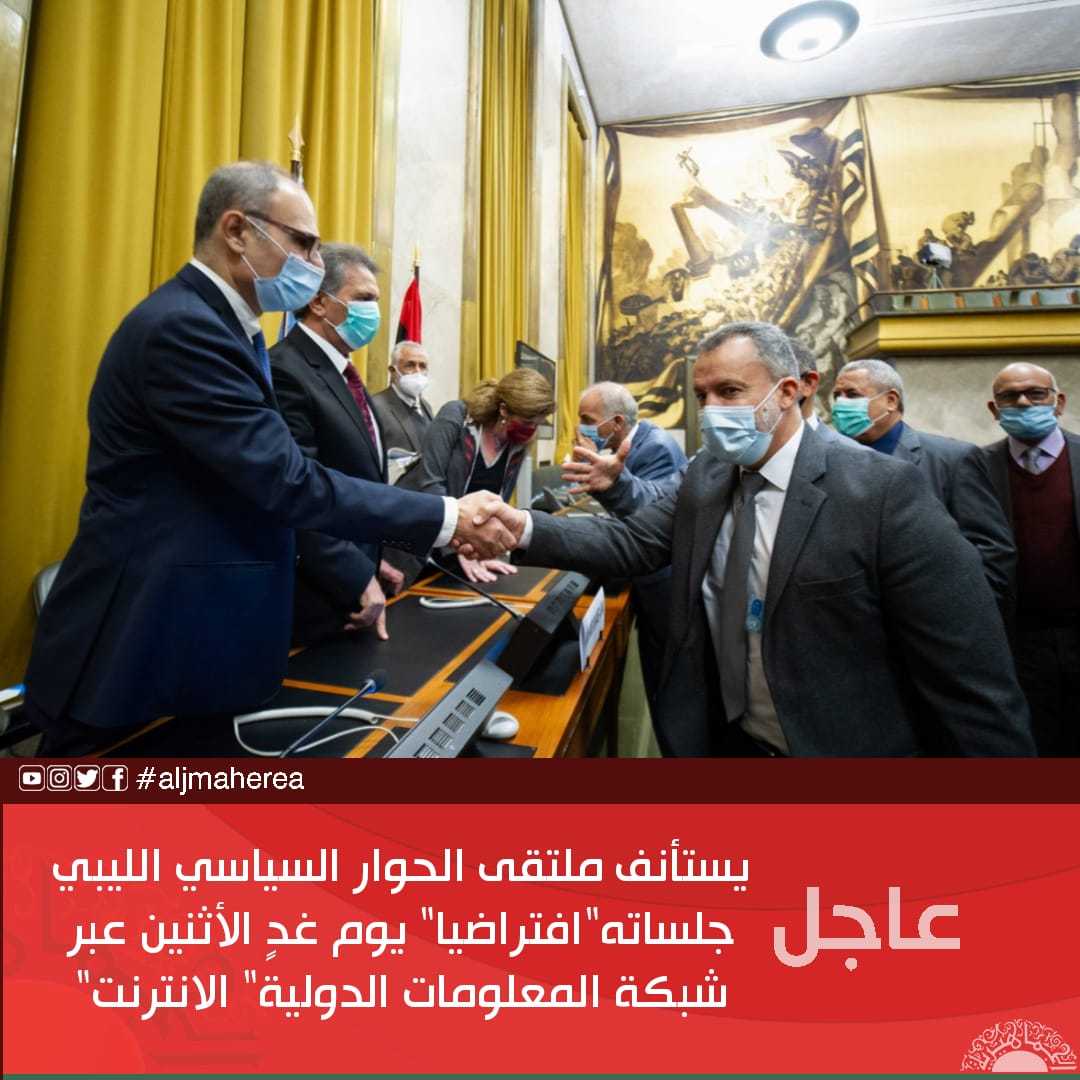 عاجل//يستأنف ملتقى الحوار السياسي الليبي جلساته”افتراضيا” يوم غدٍ الأثنين عبر شبكة المعلومات الدولية” الانترنت”