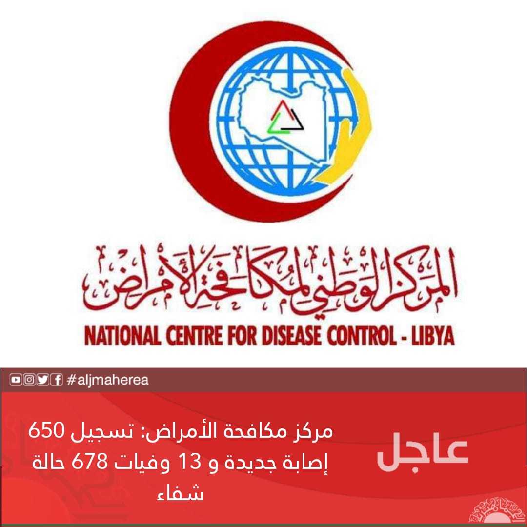 عاجل // مركز مكافحة الأمراض: تسجيل 650 إصابة جديدة و 13 وفيات 678 حالة شفاء