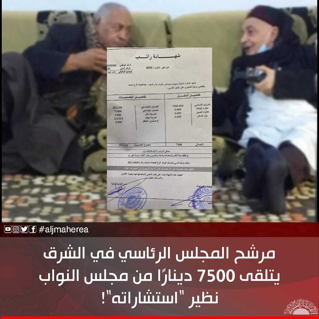 نقلت مواقع صحفية ليبية، اليوم الأثنين أن المرشح للمجلس الرئاسي عن الشرق عبدالجواد فرج العبيدي، يتلقى راتب قدره 7500 دينار من مجلس النواب، باعتباره عضوا في الهيئة الاستشارية للمجلس.