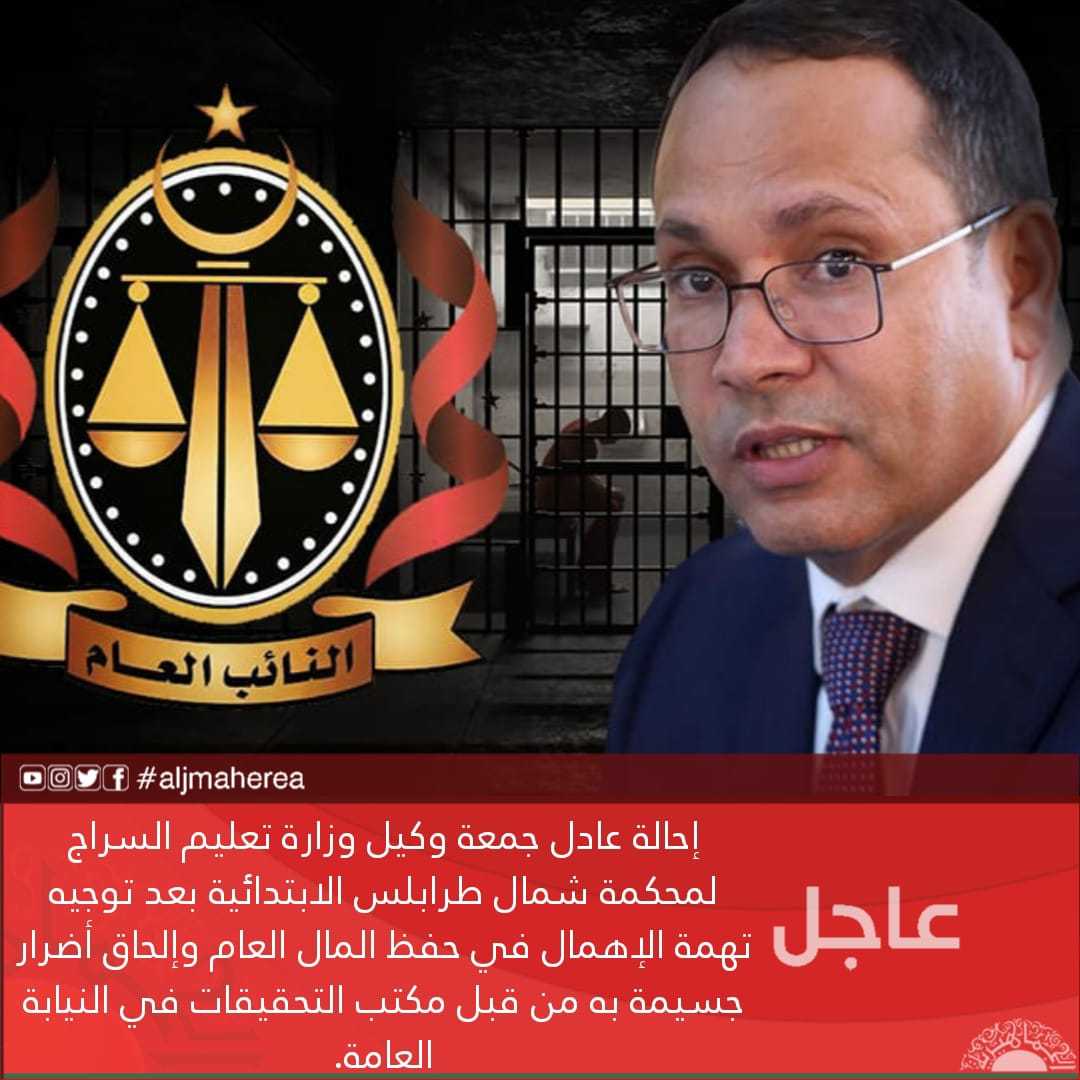 الرئيسية/عاجل/عاجل//إحالة عادل جمعة وكيل وزارة تعليم السراج لمحكمة شمال طرابلس الابتدائية بعد توجيه تهمة الإهمال في حفظ المال العام وإلحاق أضرار جسيمة به من قبل مكتب التحقيقات في النيابة العامة. عاجلمحلي عاجل//إحالة عادل جمعة وكيل وزارة تعليم السراج لمحكمة شمال طرابلس الابتدائية بعد توجيه تهمة الإهمال في حفظ المال العام وإلحاق أضرار جسيمة به من قبل مكتب التحقيقات في النيابة العامة. 24 نوفمبر، 2020 الوسومالنائب العام عادل جمعة محكمة طرابلس الأبتدائية وزارة التعليم وكيل وزارة التعليم 24 نوفمبر، 2020 فيسبوك تويتر بينتيريست واتساب تيلقرام ڤايبر مشاركة عبر البريد طباعة