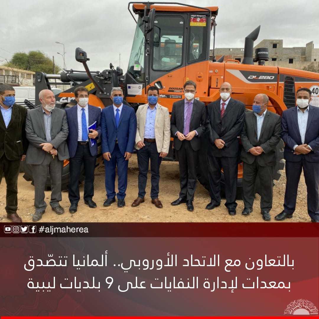 ظرا للظروف الإنسانية المتدهورة في ليبيا بعد نكبة فبراير 2011، وبالتعاون مع الاتحاد الأوروبي، أعلن السفير الألماني لدى ليبيا أوليفر أوفتشا، تصدق ألمانيا بمعدات لإدارة النفايات لتعزيز الحكم المحلي والقدرات اللامركزية، على 9 بلديات في ليبيا.