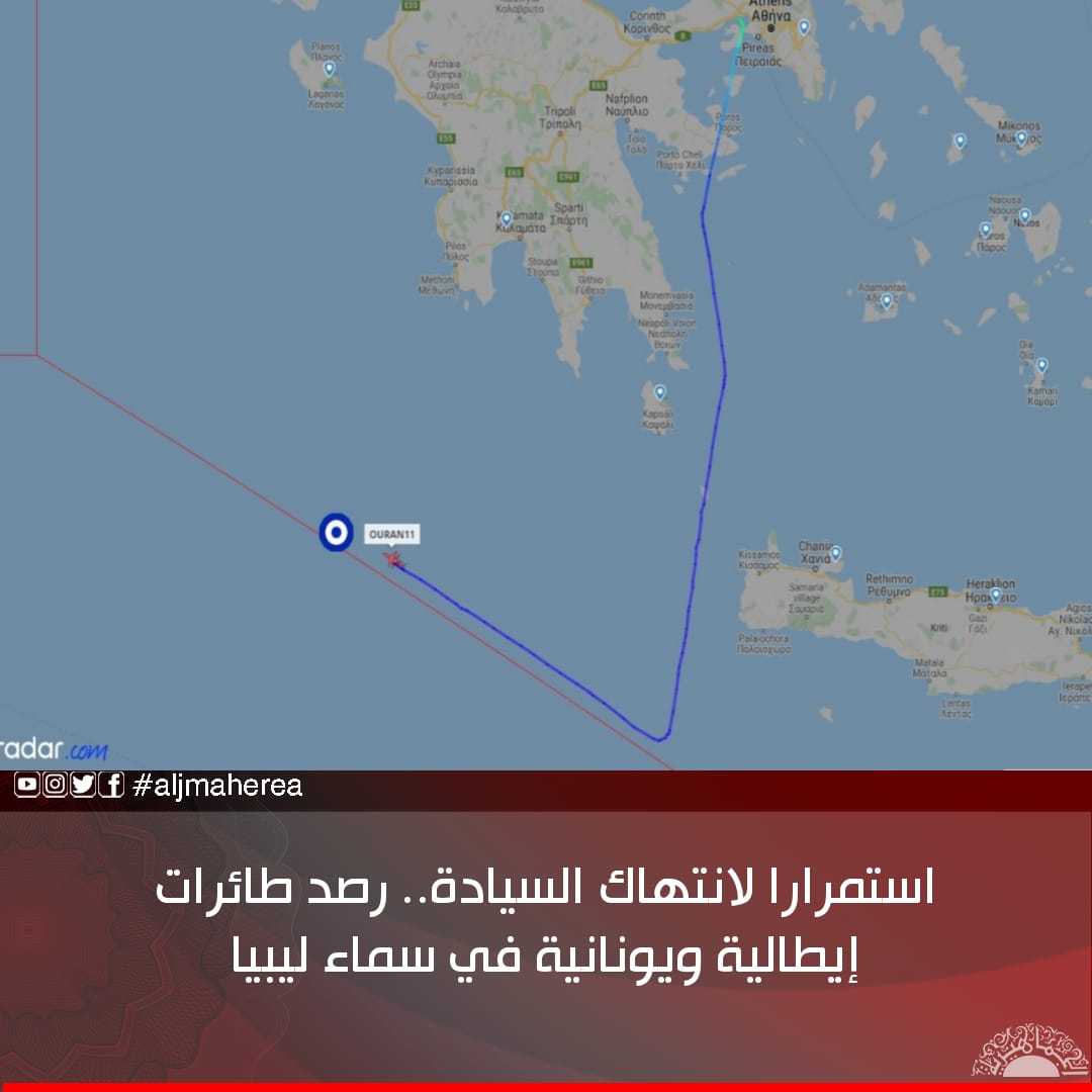 كما كشف موقع مليتاري رادر العسكري المتخصص في رصد حركة الطيران العسكري، أن طائرة تابعة لسلاح الجو اليوناني نوع 45 AE&C تسجيل 374 – Embraer EMB كانت في رحلة إلى الغرب من جزيرة كريت بالقرب من حدود منطقة معلومات الطيران بأثينا.