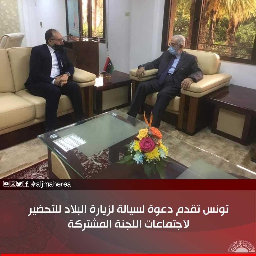 قدم سفير تونس لدى ليبيا الأسعد العجيلي، خلال لقائه مع محمد سيالة وزير خارجية السراج، دعوة من قبل وزير الخارجية التونسية لزيارة تونس من أجل التحضير لاجتماعات اللجنة المشتركة في القريب العاجل.