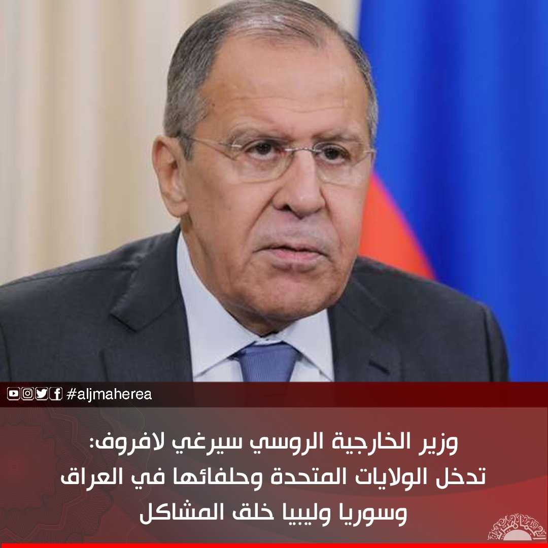 وزير الخارجية الروسي سيرغي لافروف: تدخل الولايات المتحدة وحلفائها في العراق وسوريا وليبيا خلق المشاكل