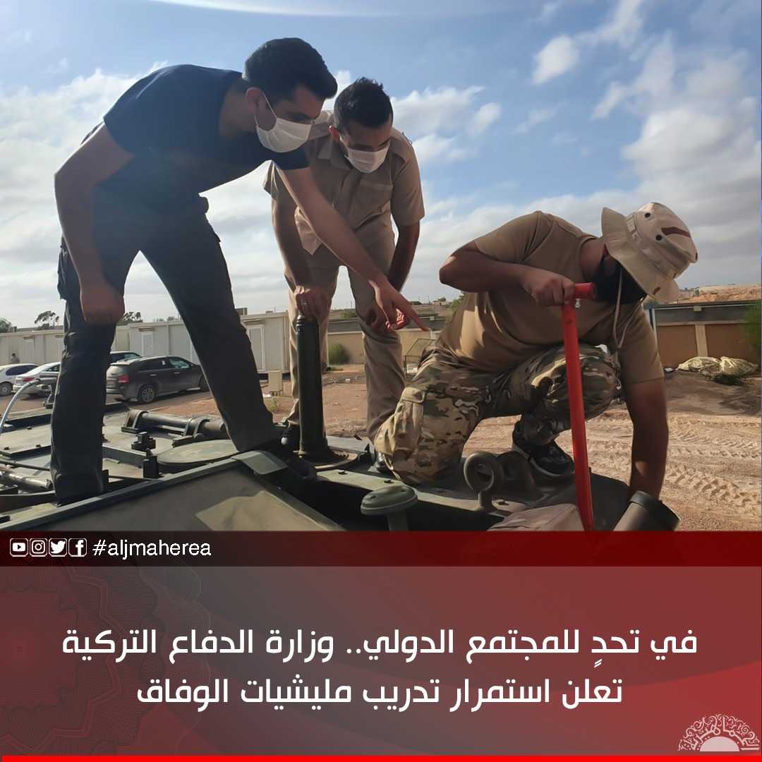 استمرارًا في نهج تركيا الذي تتحدى به المجتمع الدولي، وتؤكد خلاله مواصلتها السعي لاشعال نار الفتنة والحرب في ليبيا، ومخالفة التأكيدات المحلية والدولية والاتفاقات التي تنص على وقف العمليات العسكرية الأجنبية في ليبيا، والذي جاء كأحد بنود اتفاق لجنة 5+5 ، حيث أعلنت وزارة الدفاع التركية استمرارها في تدريب مليشيات الوفاق، مدعية أن ذلك يأتي في نطاق تنفيذ اتفاقية التدريب والتعاون والاستشارات العسكرية الموقعة بين البلدين.