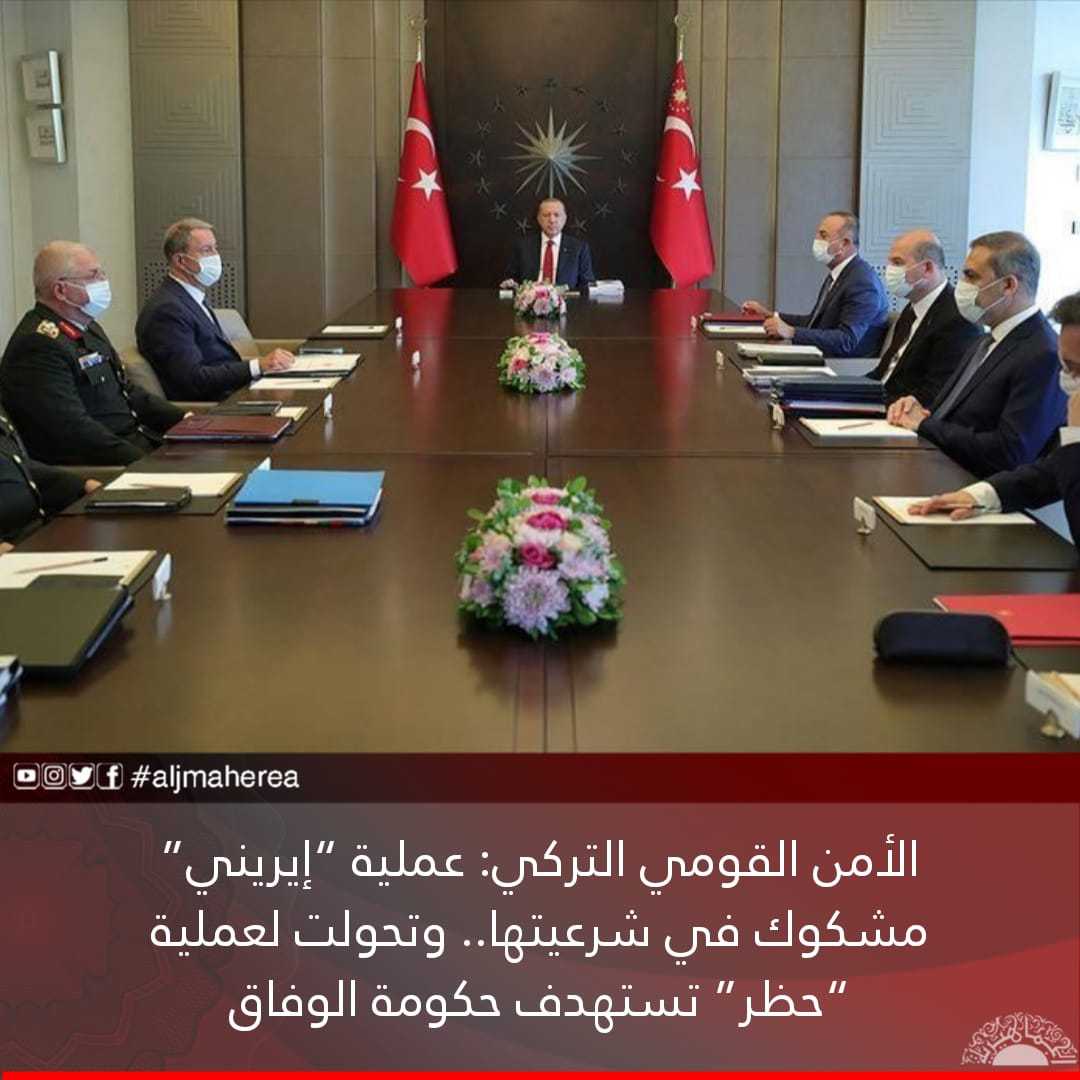الأمن القومي التركي: عملية “إيريني” مشكوك في شرعيتها.. وتحولت لعملية “حظر” تستهدف حكومة الوفاق
