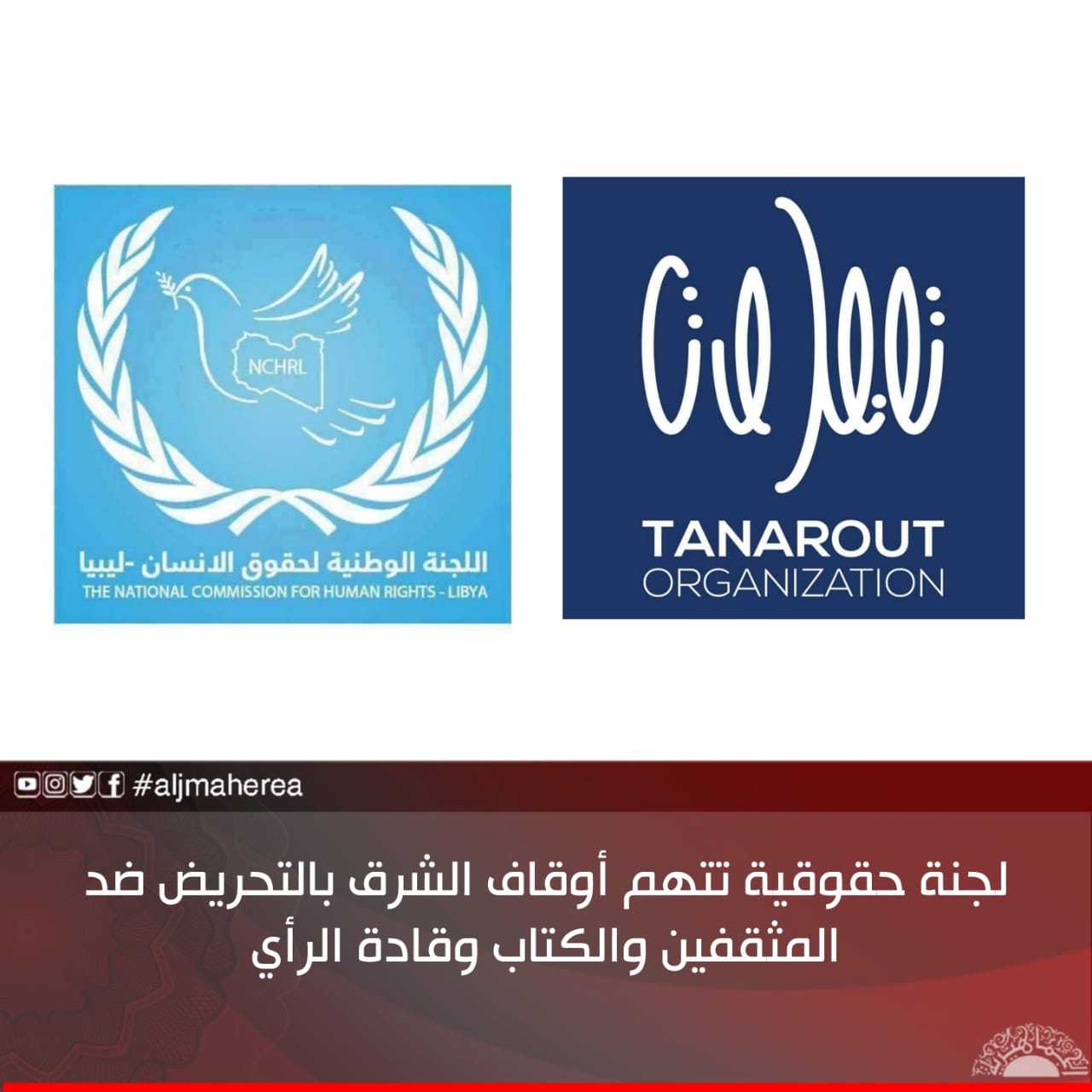 دانت لجنة حقوق الإنسان بليبيا، التصعيد الخطير الذي تقوم به الهيئة العامة للأوقاف والشؤون الإسلامية التابعة لحكومة الشرق ضد شريحة المثقفين والكتاب في عموم البلاد ومدينة بنغازي بشكل خاص، والتي كان آخرها التحريض على تجمع تاناروت الثقافي وإصدار الرسائل للجهات الأمنية والجهات العامة والتي تحوي إساءة وتشويه وتحريض ضمني بحجج وذرائع واهية ضد تجمع تاناروت الثقافي .
