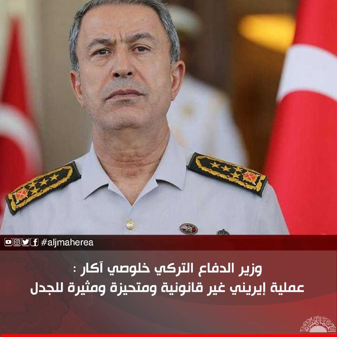 وزير الدفاع التركي خلوصي آكار : عملية إيريني غير قانونية ومتحيزة ومثيرة للجدل