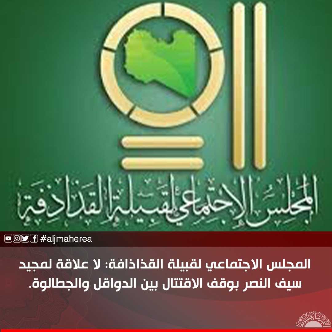 المجلس الاجتماعي لقبيلة القذاذافة: لا علاقة لمجيد سيف النصر بوقف الاقتتال بين الدواقل والجطالوة.