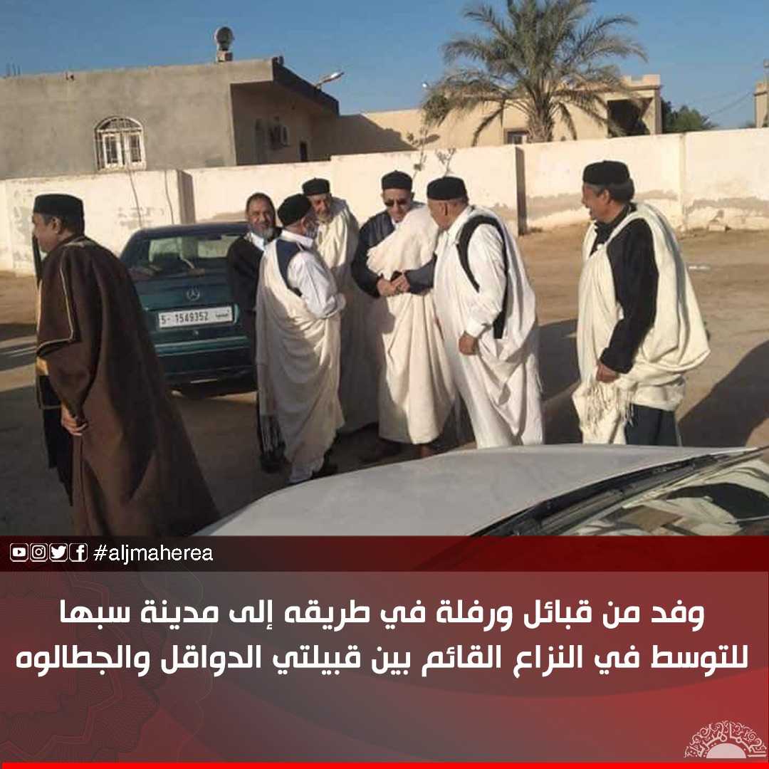 ومن المقرر أن يسعى الوفد لحل النزاع القائم بمدينة سبها بين أبناء قبيلتي الدواقل والجطالوه.