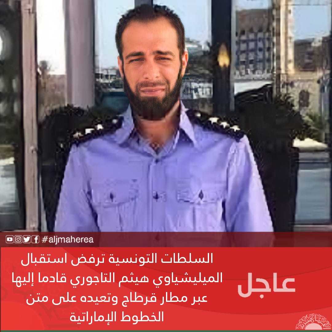 عاجل// السلطات التونسية ترفض استقبال الميليشياوي هيثم التاجوري قادما إليها عبر مطار قرطاج وتعيده على متن الخطوط الإماراتية