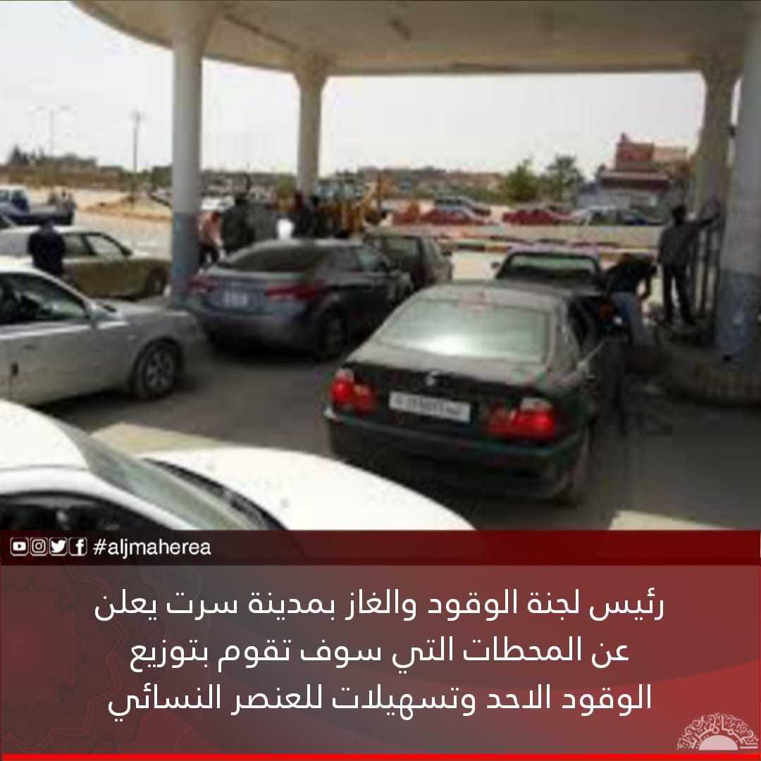 رئيس لجنة الوقود والغاز بمدينة سرت يعلن عن المحطات التي سوف تقوم بتوزيع الوقود الاحد وتسهيلات للعنصر النسائي