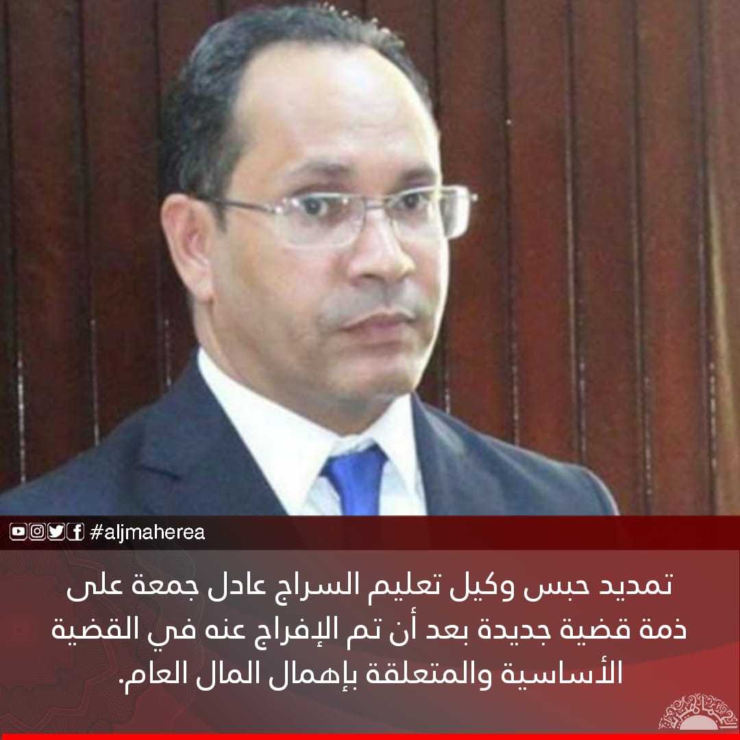 تمديد حبس وكيل تعليم السراج عادل جمعة على ذمة قضية جديدة بعد أن تم الإفراج عنه في القضية الأساسية والمتعلقة بإهمال المال العام.