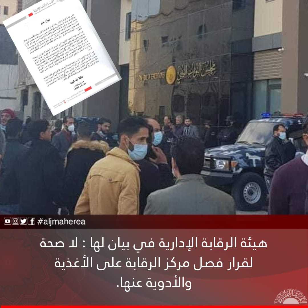 نفت هيئة الرقابة الإدارية بطرابلس، صدور أي قرار ، بشأن فصل مركز الرقابة على الأغذية والأدوية عن الهيئة.