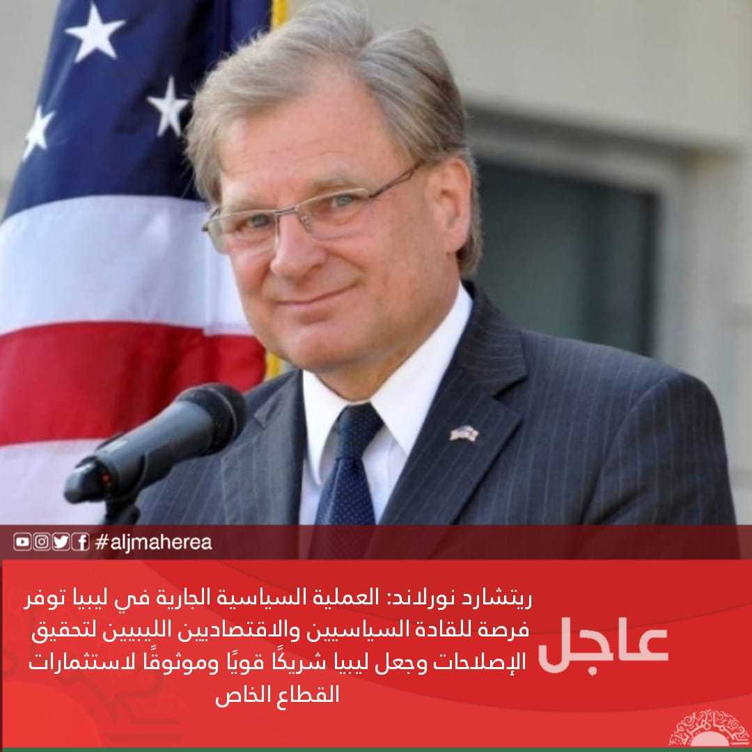 عاجل// ريتشارد نورلاند: العملية السياسية الجارية في ليبيا توفر فرصة للقادة السياسيين والاقتصاديين الليبيين لتحقيق الإصلاحات وجعل ليبيا شريكًا قويًا وموثوقًا لاستثمارات القطاع الخاص