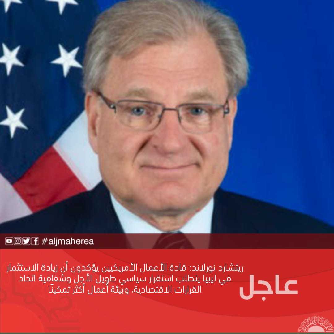 عاجل// ريتشارد نورلاند: قادة الأعمال الأمريكيين يؤكدون أن زيادة الاستثمار في ليبيا يتطلب استقرار سياسي طويل الأجل وشفافية اتخاذ القرارات الاقتصادية، وبيئة أعمال أكثر تمكينًا