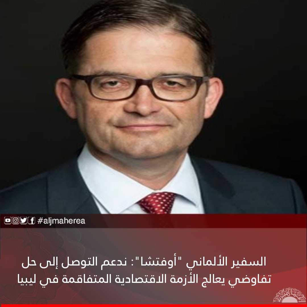 ورحب السفير الألماني لدي ليبيا، أوليفر أوفتشا، بدعوة الرئاسة المشتركة لفريق العمل الخاص بالشؤون الاقتصادية التابع للبعثة الأممية إلى ليبيا؛ إلى حل تفاوضي ليبي يعالج الأزمة الاقتصادية المتفاقمة.