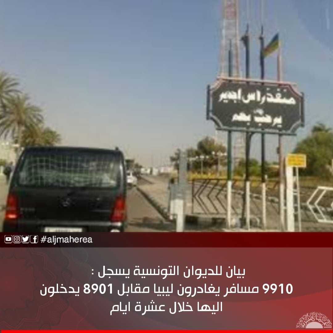 بيان للديوان التونسية يسجل : 9910 مسافر يغادرون ليبيا مقابل 8901 يدخلون اليها خلال عشرة ايام