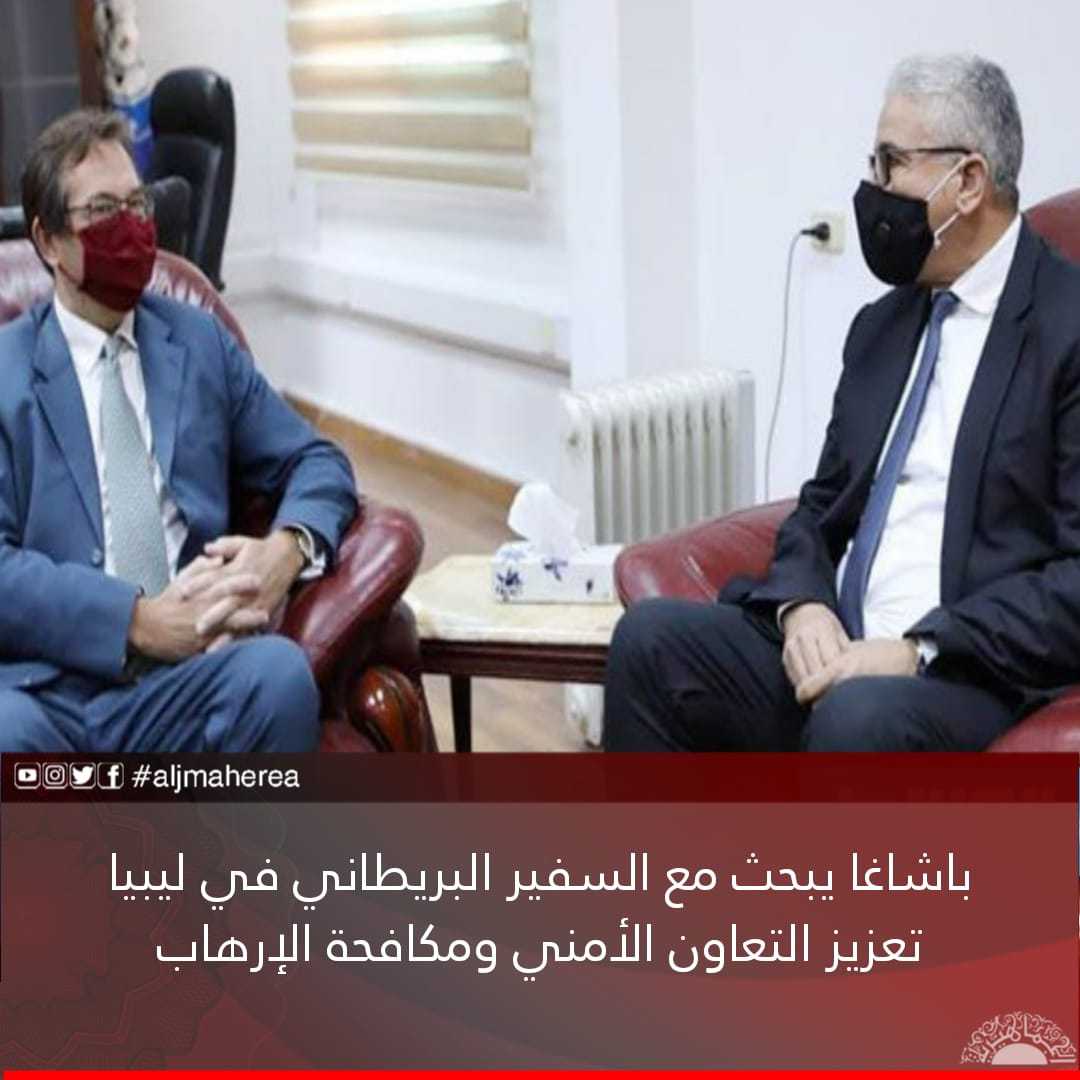 في اطار لقاءاته المتعددة مع السفراء الأجانب في ليبيا، بحث فتحي باشاغا، وزير داخلية السراج مع السفير البريطاني لدي ليبيا، نيكولاس هوبتون، العديد من القضايا ومنها تدريب الكوادر الأمنية في عدة مجالات أمنية، أهمها مكافحة الإرهاب والجريمة المنظمة.