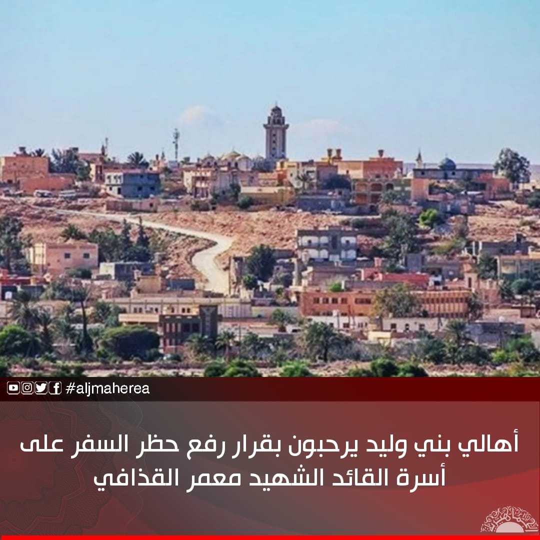 رحب أهالي مدينة بني وليد بالقرار الصادر من مجلس الأمن برفع حظر السفر على أسرة القائد الشهيد معمر القدافي.