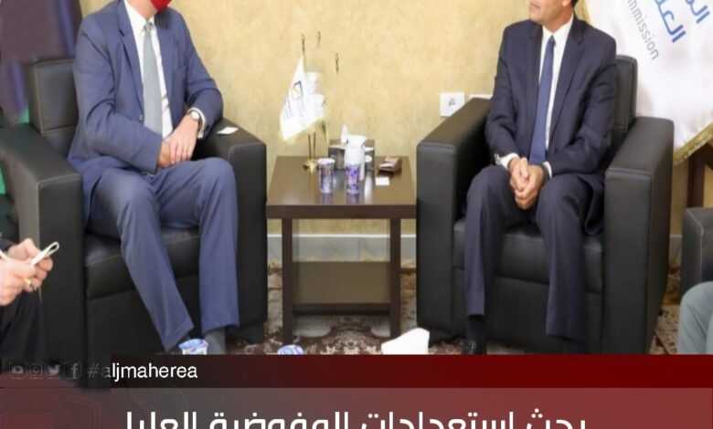 بحث رئيس المفوضية العليا للانتخابات عماد السائح مع السفير البريطاني أوجه الدعم المُقدّم من بعثة الاتحاد الأوروبي عبر مشروع “بيبول” .