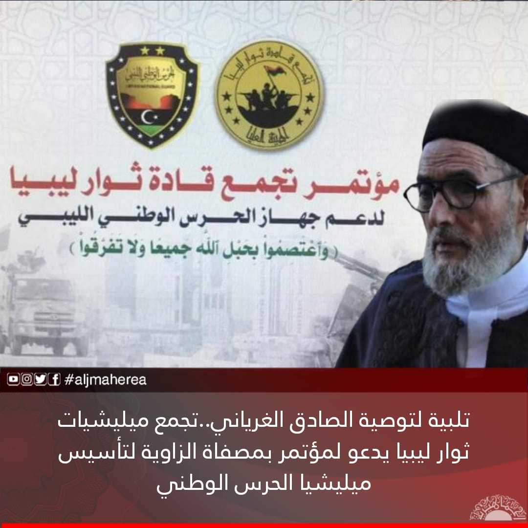 تلبية لتوصية الصادق الغرياني..تجمع ميليشيات ثوار ليبيا يدعو لمؤتمر بمصفاة الزاوية لتأسيس ميليشيا الحرس الوطني