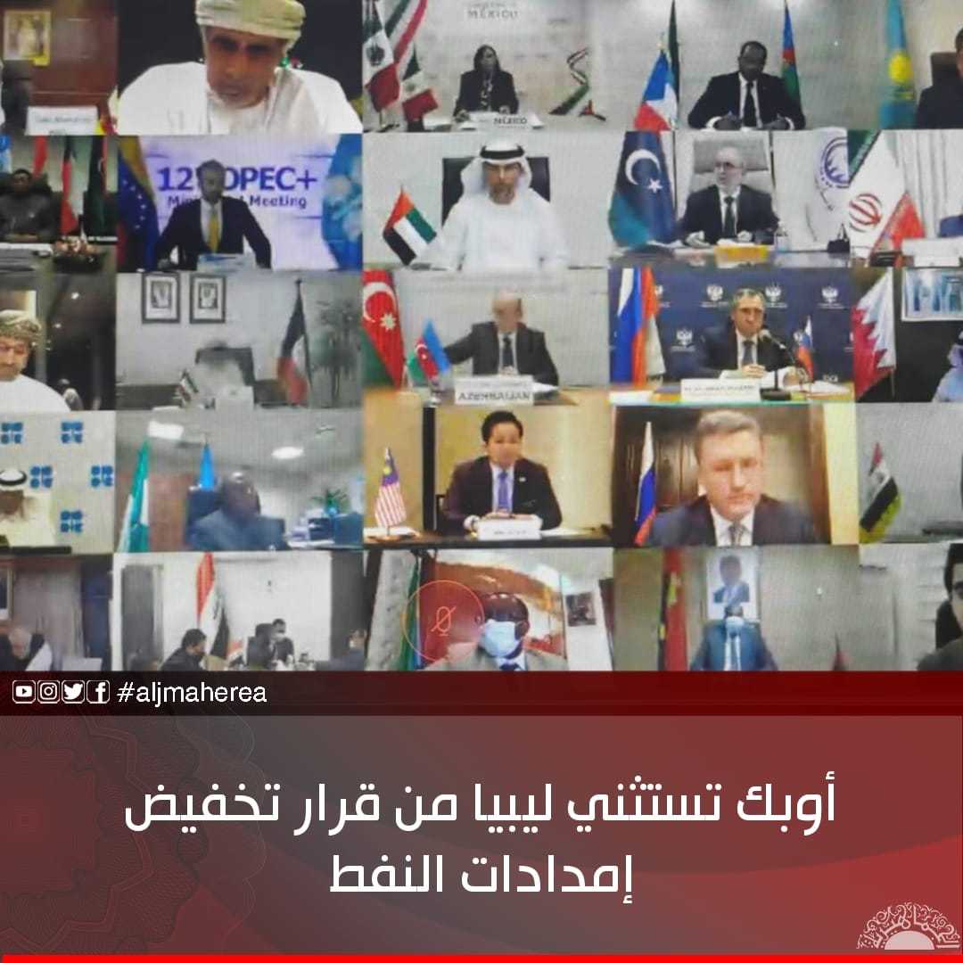 أعلنت مؤسسة النفط اليوم الجمعة، استثناء دولة ليبيا وإيران وفنزويلا من المشاركة في قرار تخفيض امدادات النفط بمقدار 9.7 مليون برميل في اليوم نظرا للظروف التي تمر بها هذه الدول.
