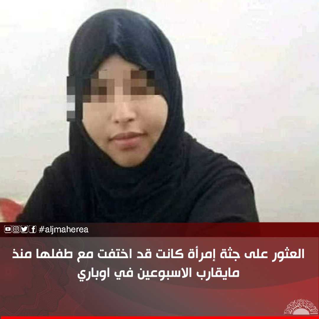 العثور على جثة إمرأة كانت قد اختفت مع طفلها منذ مايقارب الاسبوعين في اوباري