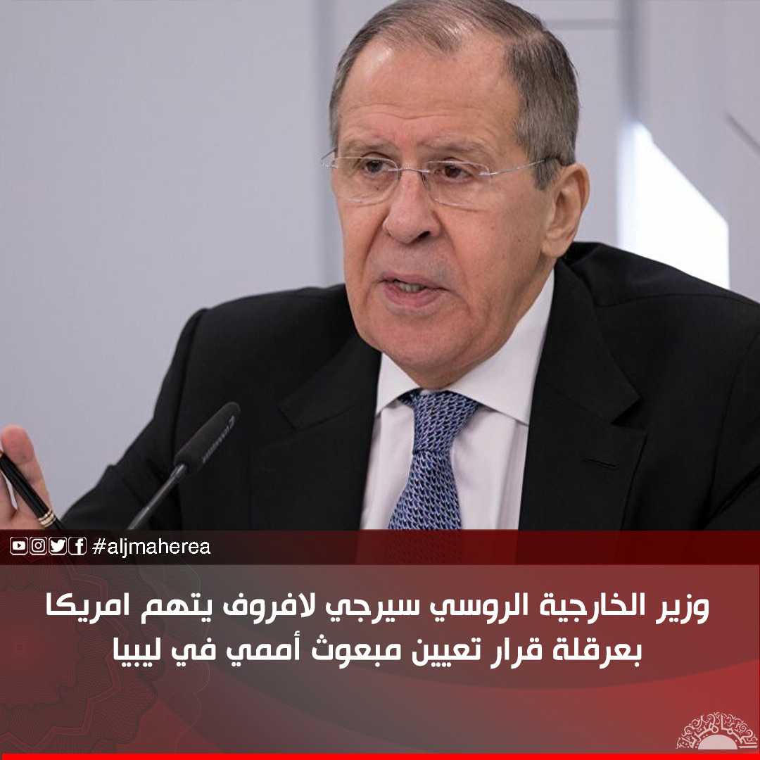 أعرب وزير الخارجية الروسي سيرجي لافروف، اليوم الجمعة عن قلق بلاده إزاء عدم حل مسألة تعيين مبعوث خاص للأمم المتحدة إلى ليبيا، متهما الولايات المتحدة بعرقلة حل المسألة لشهور عدة.