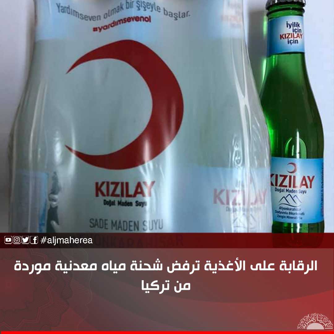 الرقابة على الأغذية ترفض شحنة مياه معدنية موردة من تركيا