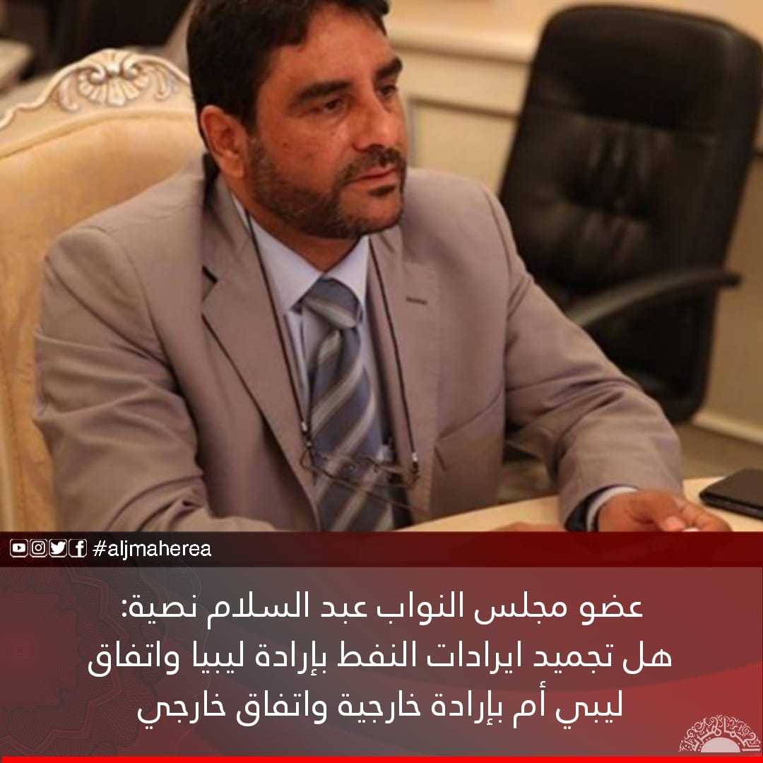عضو مجلس النواب عبدالسلام نصية: هل تجميد ايرادات النفط بإرادة ليبيا واتفاق ليبي أم بإرادة خارجية واتفاق خارجي