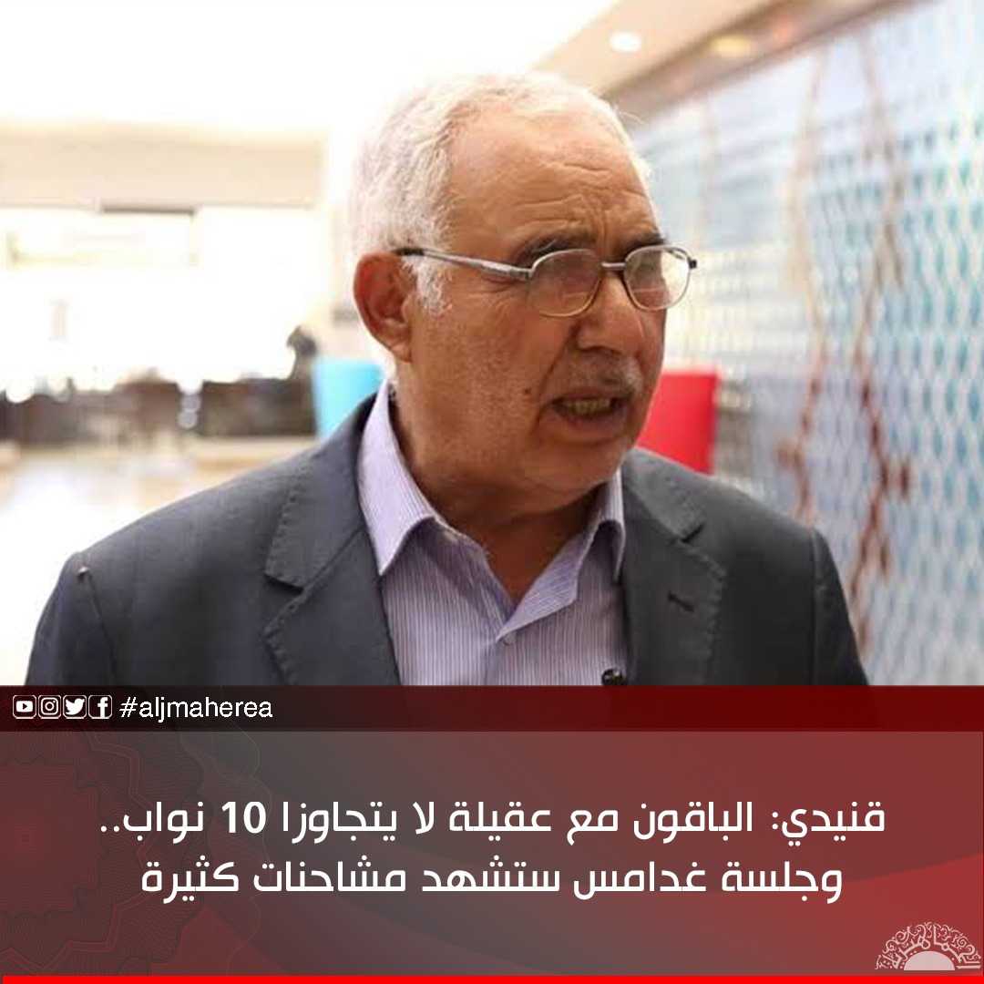 وكشف قنيدي، في تصريحات تلفزيونية تابعتها قناة “الجماهيرية” عبر قناة “التناصح”، عن أنه تم الاتفاق على إلغاء رئاسات النواب كلها، وقال: “لم يبق مع عقيلة صالح سوى عدد من النواب لا يتجاوز الـ 10، تمنينا أن يلتحق بنا، لكنه مصر على البقاء في بنغازي والامتناع عن الحضور”