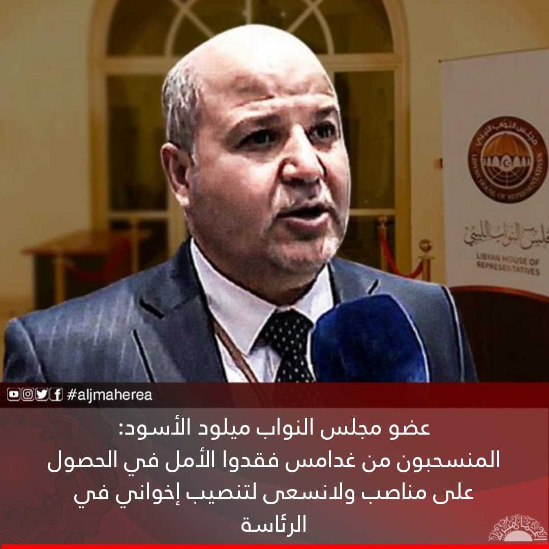 وأوضح الأسود في تصريح له أن عدد الإخوان بمجلس النواب وتحديدا في الجلسة التي ستعقد بغدامس قد لايزيد على 15 نائبًا، مشيرا إلى أنهم اتفقوا خلال الاجتماعات التشاورية السابقة أن تؤول رئاسة المجلس لشخصية من مناطق الشرق الليبي.