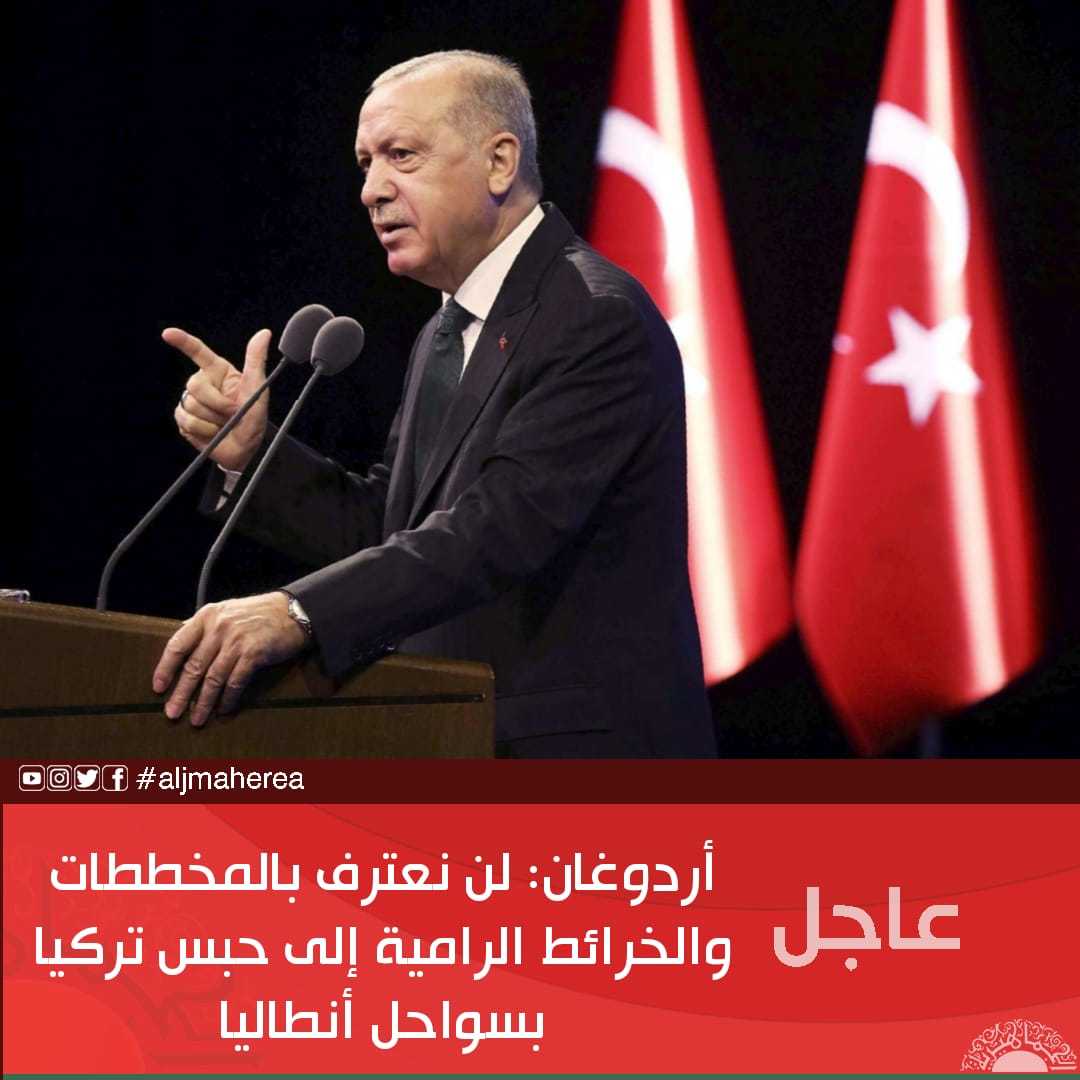 عاجل// أردوغان: لن نعترف بالمخططات والخرائط الرامية إلى حبس تركيا بسواحل أنطاليا