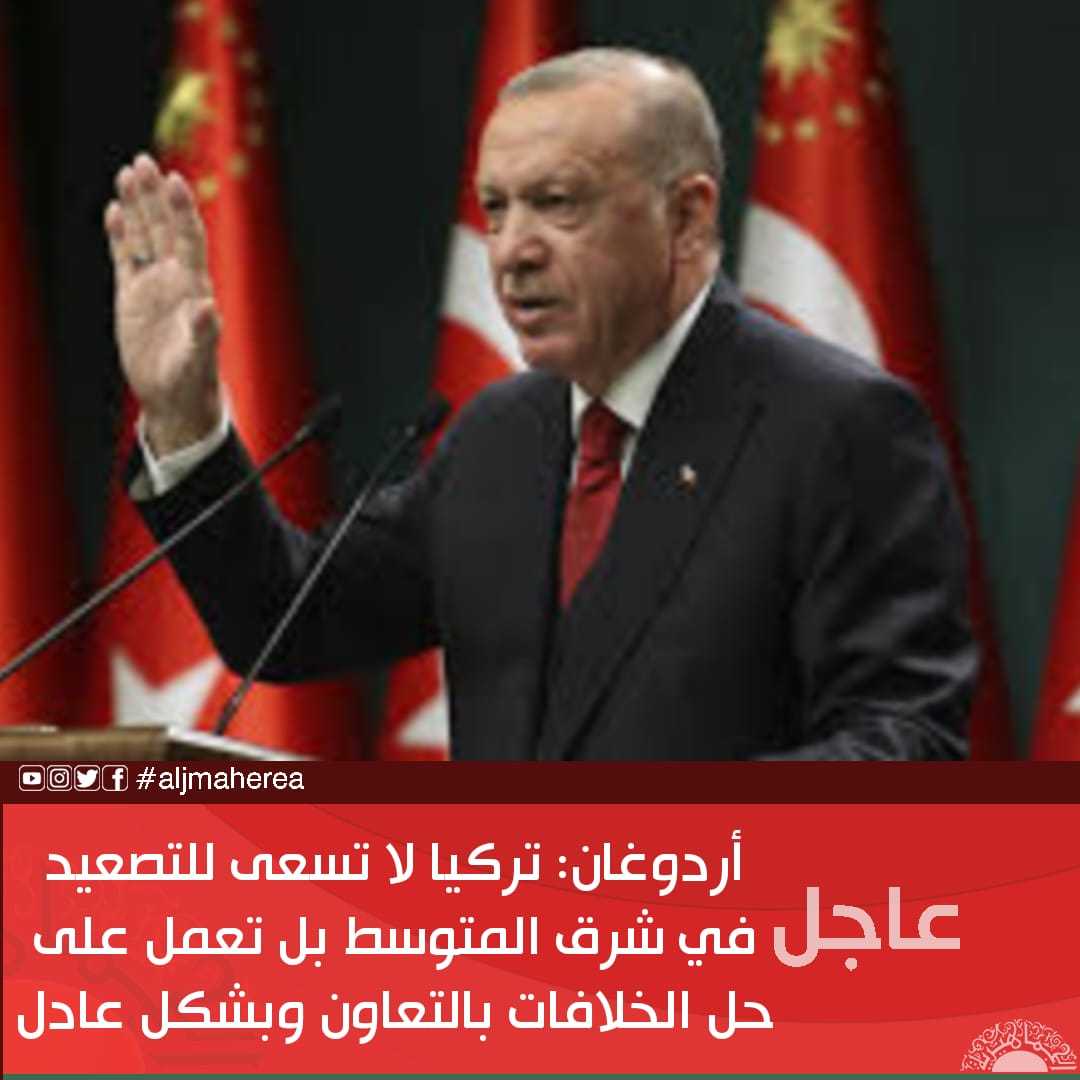 عاجل// أردوغان: تركيا لا تسعى للتصعيد في شرق المتوسط بل تعمل على حل الخلافات بالتعاون وبشكل عادل