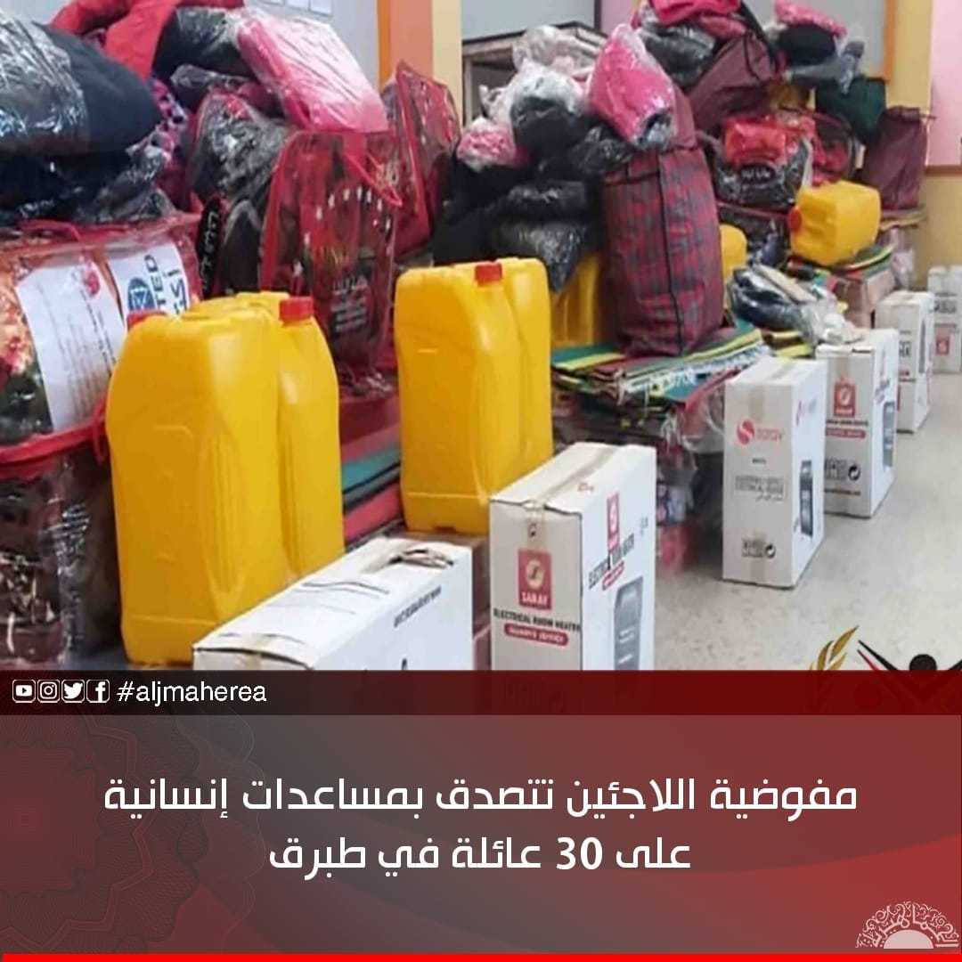 مفوضية اللاجئين تتصدق بمساعدات إنسانية على 30 عائلة في طبرق