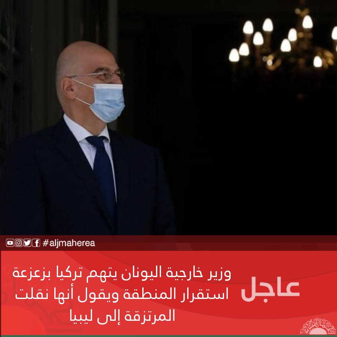 عاجل| وزير خارجية اليونان يتهم تركيا بزعزعة استقرار المنطقة ويقول أنها نقلت المرتزقة إلى ليبيا